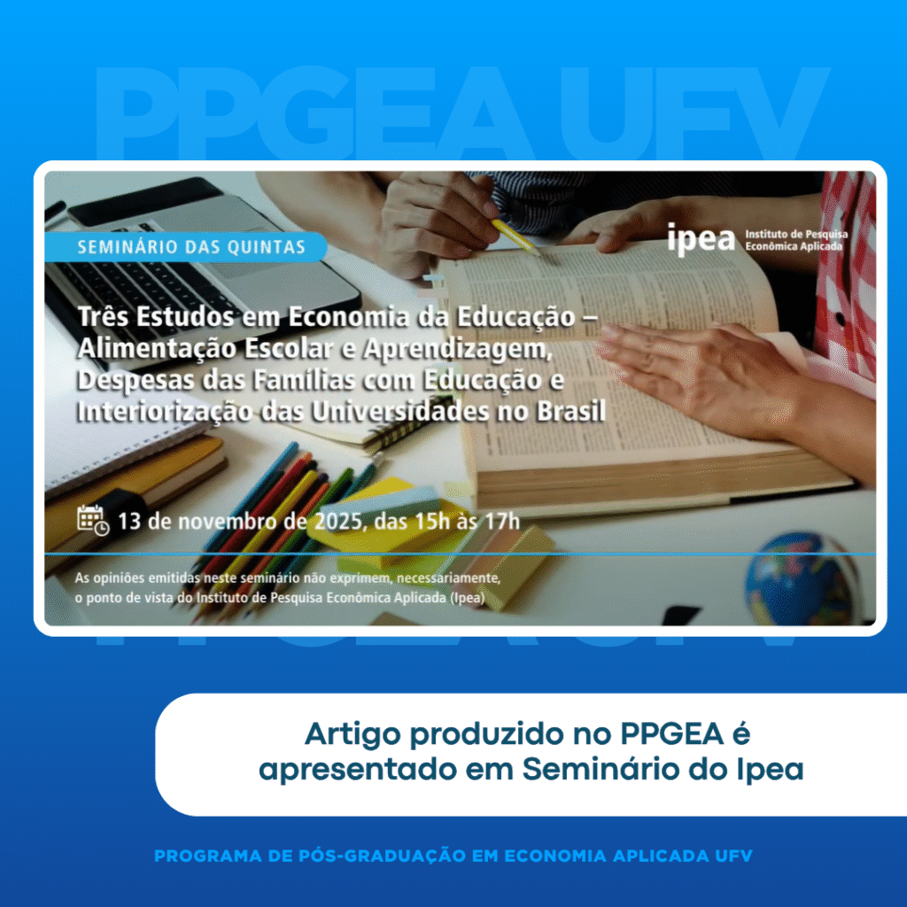 O artigo “Sinergia entre a atuação de nutricionistas e compras da agricultura familiar: impactos do PNAE sobre desempenho escolar e estado nutricional infantil”, produzido pela discente Caroline de Deus e pela docente Maria Micheliana da Costa Silva, foi apresentado em Seminário do Ipea sobre Economia da Educação, na quinta-feira 13/11/2025.